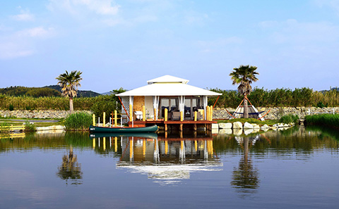 3タイプのグランピング施設をはじめ、オートキャンプ、キャビンなどバラエティ豊富なアウトドア体験を提案しています。まるで米国のリゾートにきたような優雅な演出が特徴です。