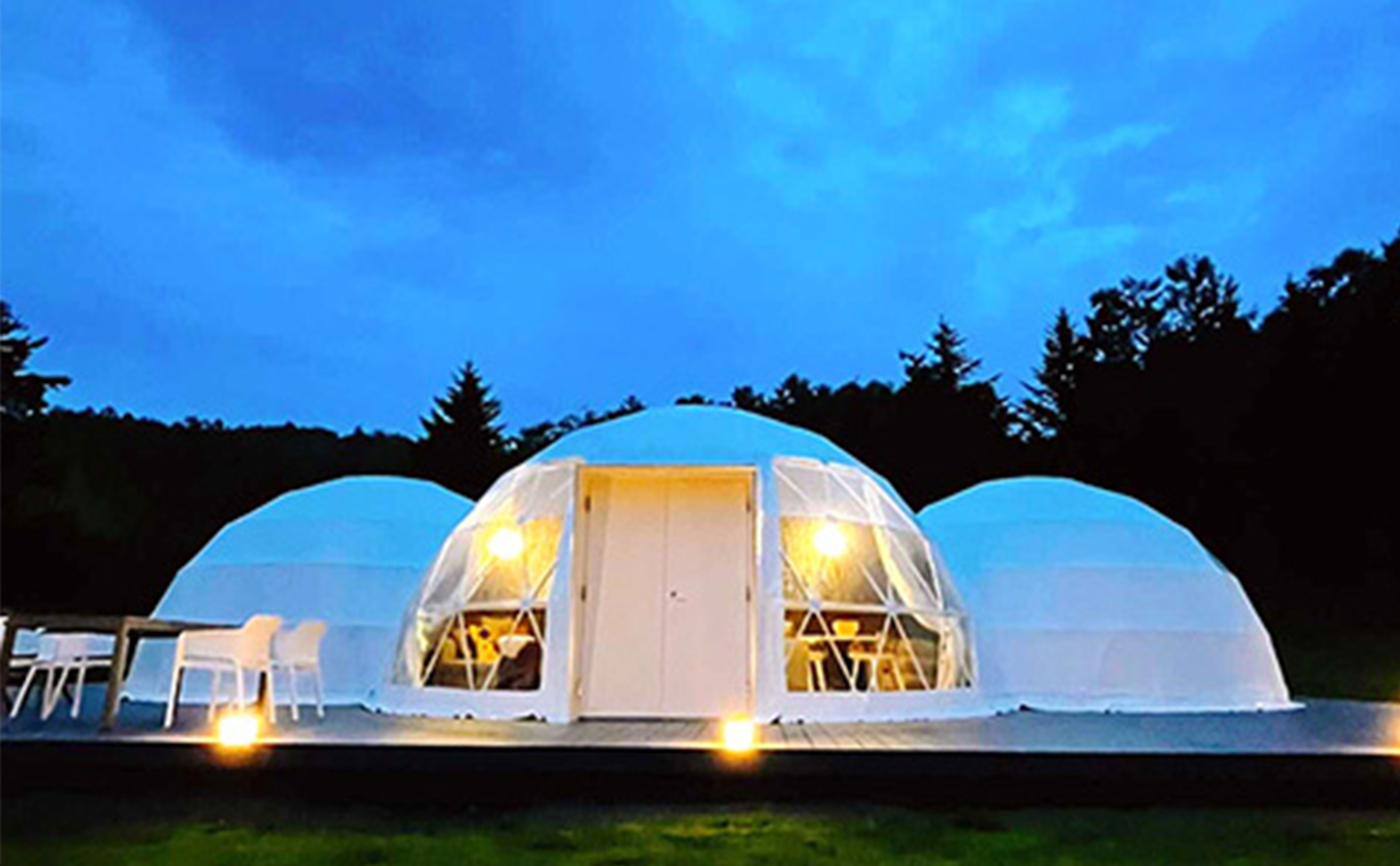 私達グランピングジャパンでは、日本におけるグランピング創生期である2012 年より、世界中で愛されているグランピングの歴史を学び、その本質を正しく日本中に伝えるため活動を始めました。その活動の一環とは、日本の風土、気候に適したホテルテントの開発や導入を進めてきており、国内最大級のホテルテントのラインナップを有しております。グランピングジャパンでは、グランピングの企画、施設のプランニング、テントの開発、販売、運営、プロモーションに至るまで一貫して行っております。